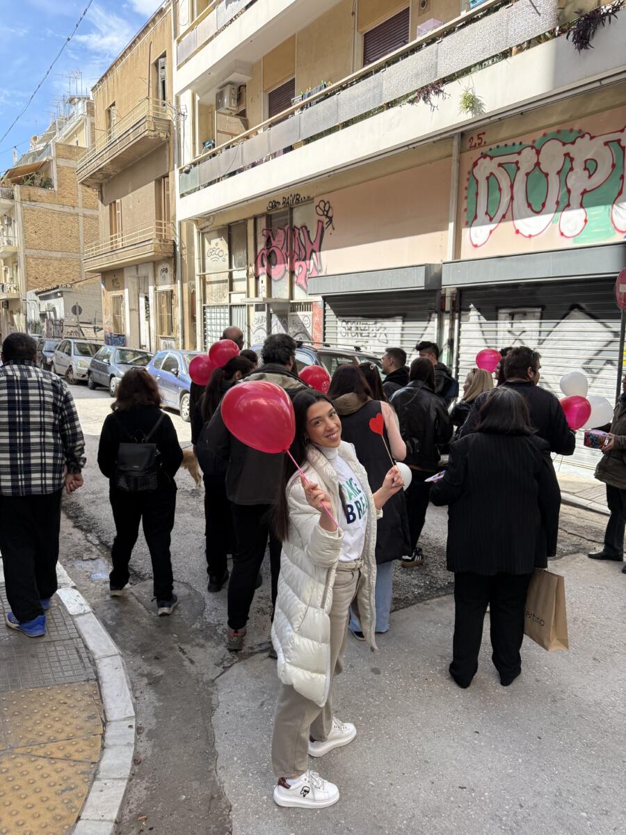 Περπατήσαμε όλοι μαζί σε σχήμα καρδιάς στο κέντρο της πόλης, στέλνοντας ένα συμβολικό μήνυμα σύνδεσης, αποδοχής και συμπερίληψης. Η δράση αποτέλεσε μια ανοιχτή πρόσκληση προς όλους τους πολίτες να γιορτάσουν την αγάπη ως δύναμη ενότητας και ψυχικής ενδυνάμωσης, δημιουργώντας έναν ασφαλή χώρο συνάντησης, χαράς και αυθεντικής έκφρασης.